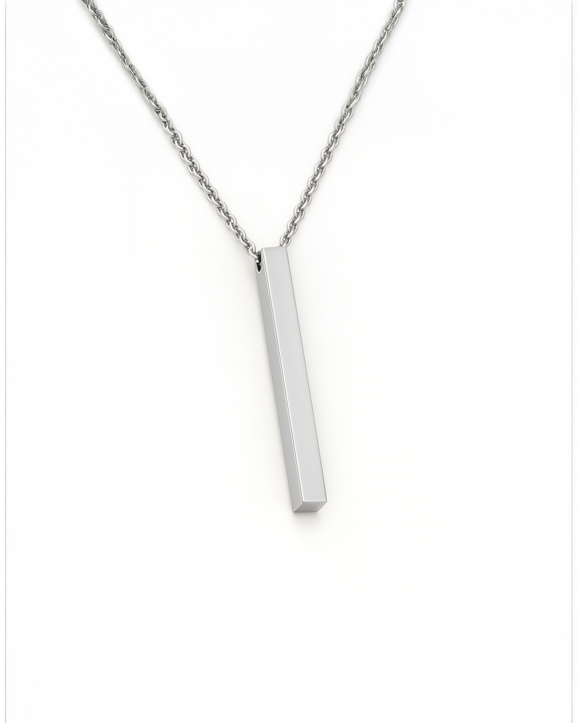 A clean, polished vertical bar crafted from stainless steel. Minimal and modern, designed for effortless everyday wear.