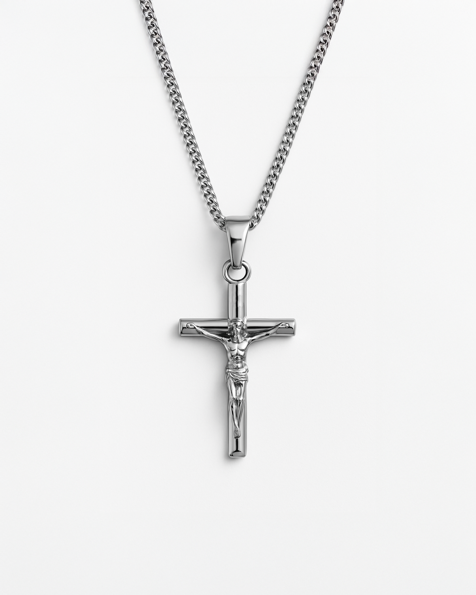 A timeless expression of faith and craft. The detailed crucifix design is paired with a modern chain, creating a piece that feels both meaningful and versatile.