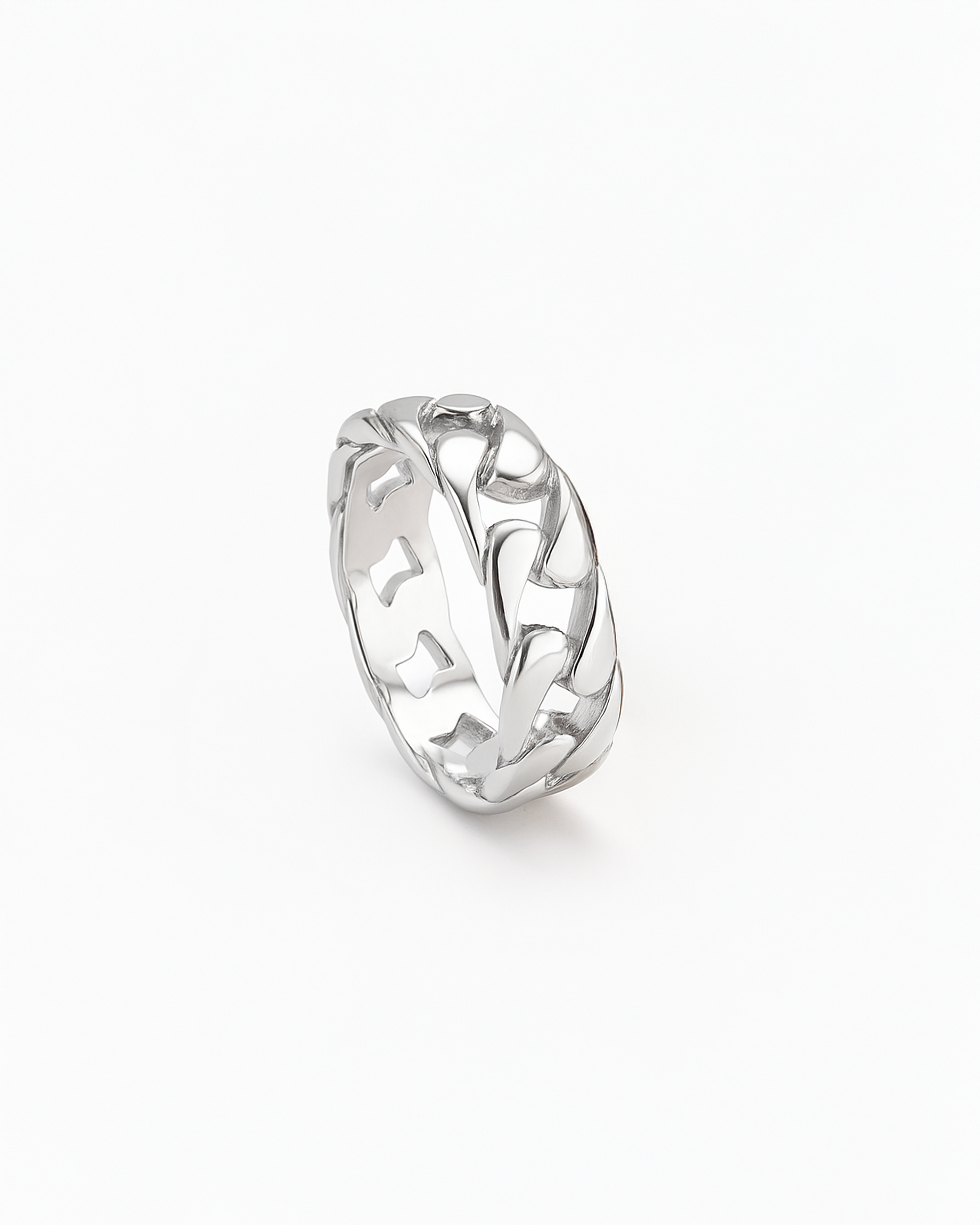 Featuring interlocking Cuban links, this ring delivers bold structure with a polished, versatile finish. A modern classic crafted from durable stainless steel.