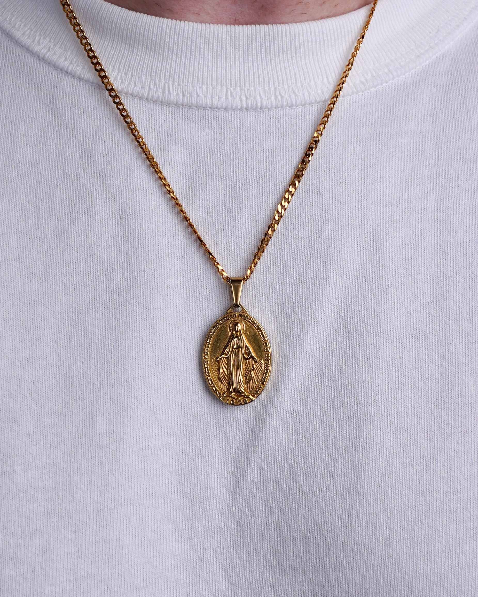 A polished interpretation of a classic icon. Finished in radiant gold, the Mary design creates a pendant that feels both symbolic and refined for modern wear.