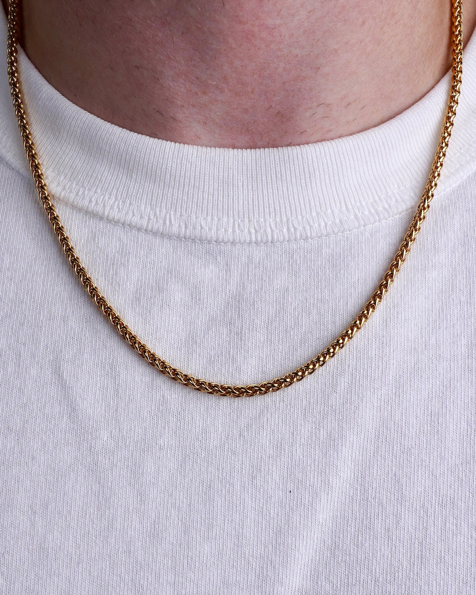 With its detailed braided links, the Wheat Chain in 18k Gold is designed for understated elegance. A piece that feels modern yet timeless.